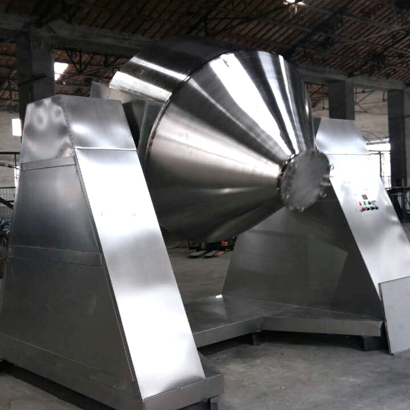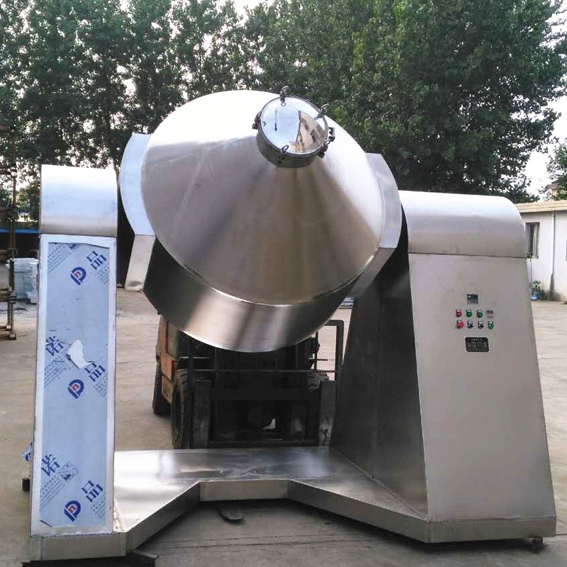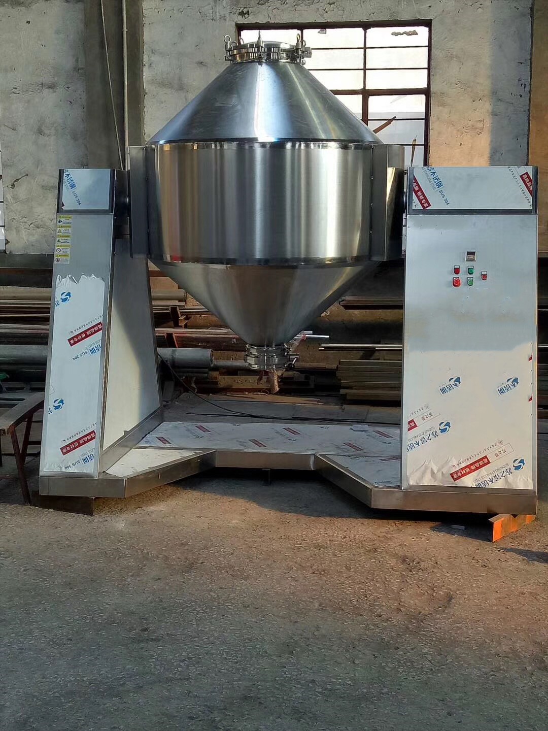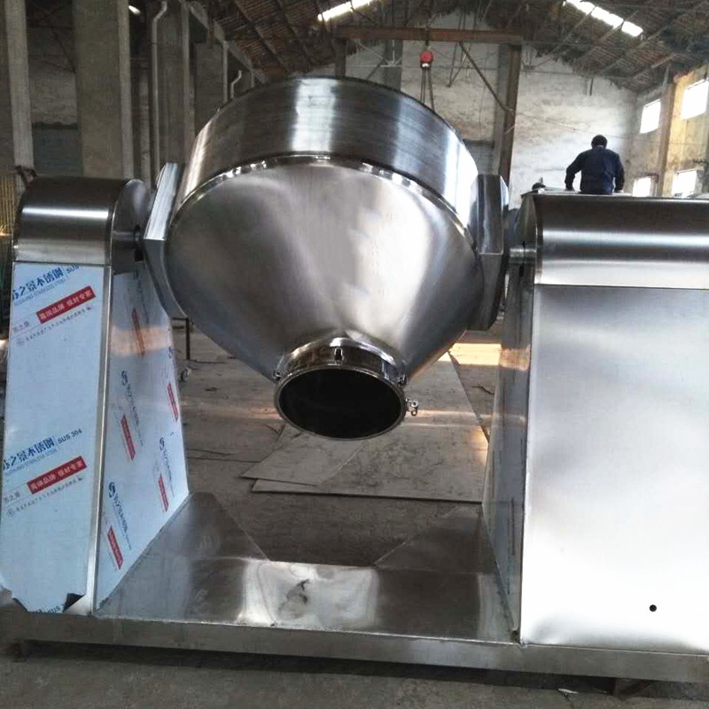 本機(jī)將粉末或粒狀物料通過真空輸送或人工加料到雙錐容器中,隨著容量的不斷旋轉(zhuǎn),物料在容器中進(jìn)行復(fù)雜的撞擊運(yùn)動,達(dá)到均勻的混合。