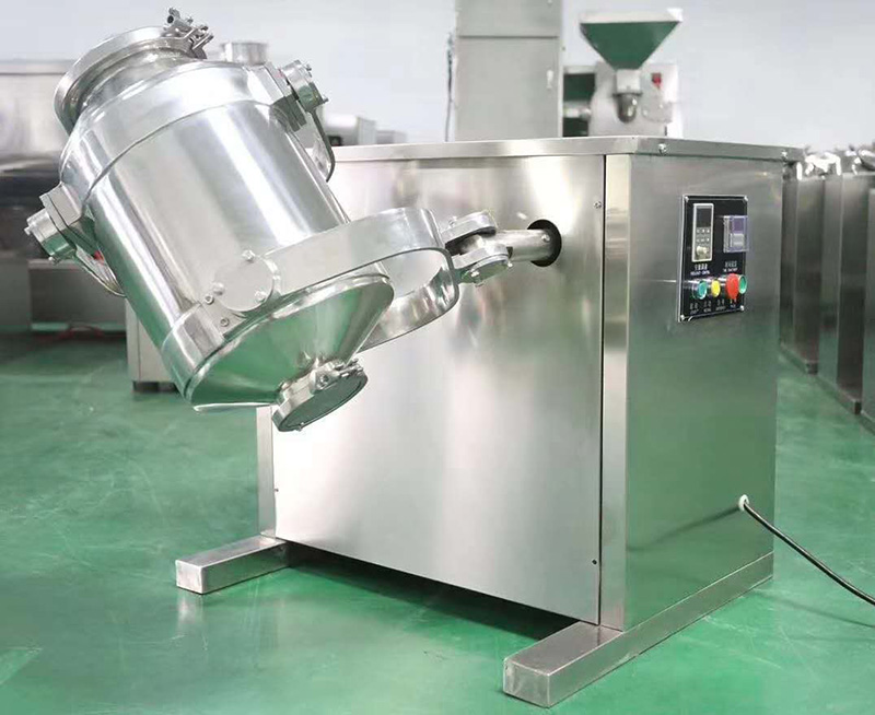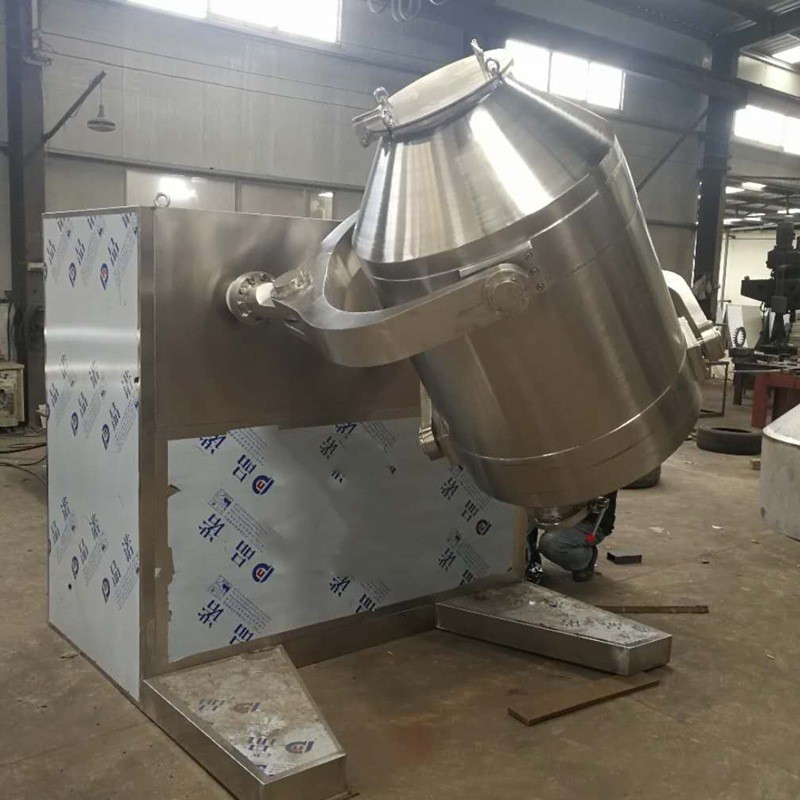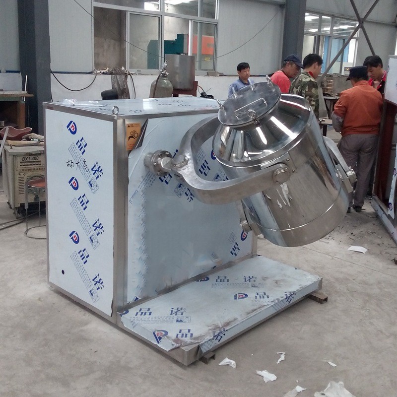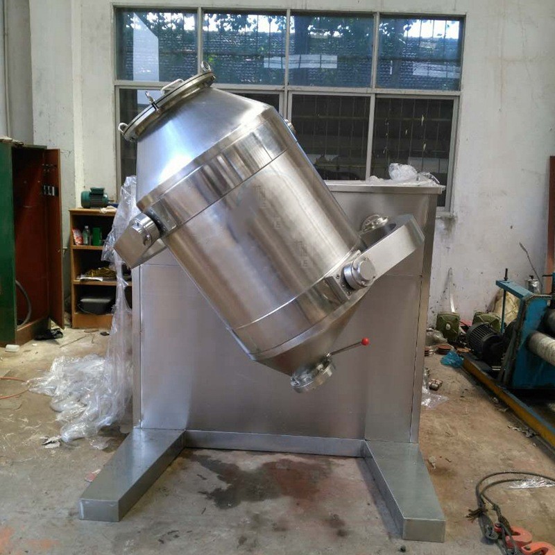 三維運(yùn)動(dòng)混合機(jī)用于制藥、化工、食品、輕工、電子、機(jī)械、礦冶、國(guó)防工業(yè)以及各科研單位的粉狀、顆粒狀物料的高均勻度混合。該機(jī)的混合筒多方向運(yùn)動(dòng),物料無(wú)離心力作用,無(wú)比重偏析及分層、積聚現(xiàn)象,各組分可有懸殊的重量比,混合率達(dá)99.9%以上,是目前各種混合機(jī)中的一種較理想的產(chǎn)品。筒體裝料率大,最高可達(dá)80%(普通混合機(jī)僅為40%),效率高,混合時(shí)間短。