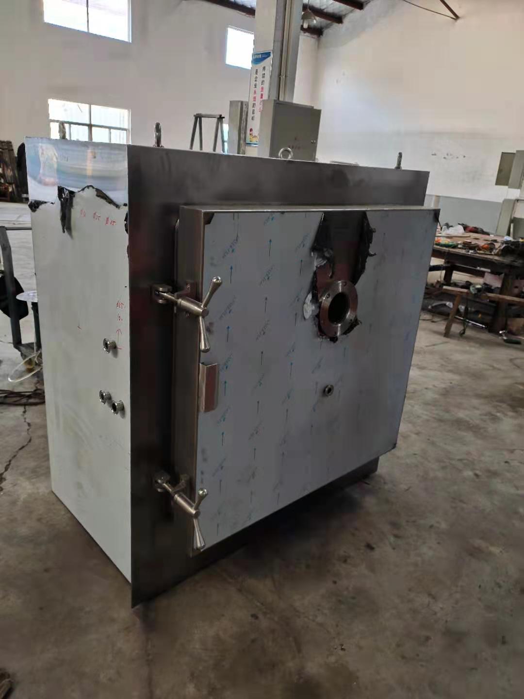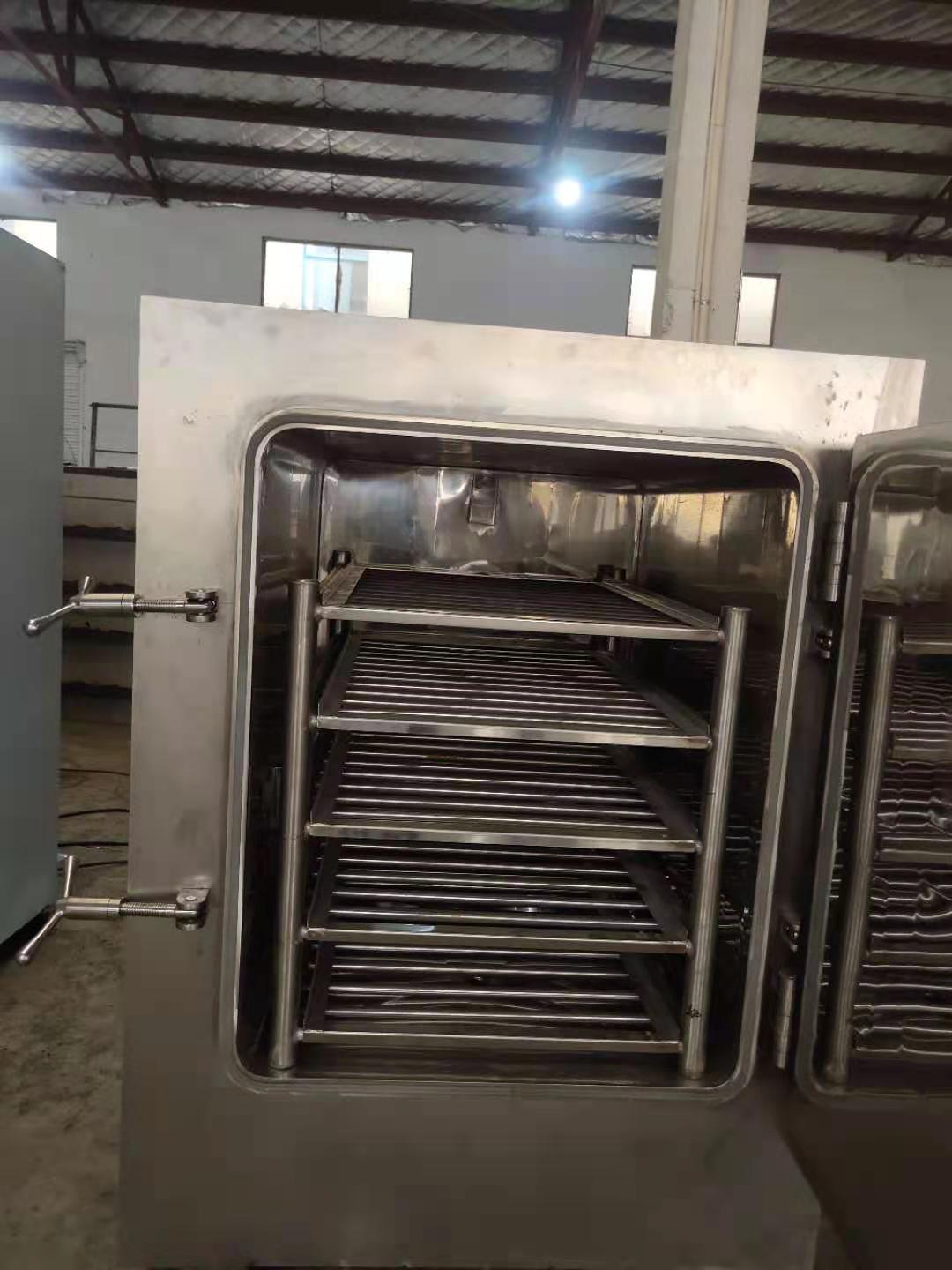 真空干燥箱為較古老的干燥裝置,箱內(nèi)被加熱板分成若干層。加熱板中通入熱水或低壓蒸汽作為加熱介質(zhì),將鋪有待干燥藥品的料盤放在加熱板上,關(guān)閉箱門,箱內(nèi)用真空泵抽成真空。加熱板在加熱介質(zhì)的循環(huán)流動(dòng)中將藥品加熱到指定溫度,水分即開始蒸發(fā)并隨抽真空逐漸抽走。此設(shè)備易于控制,可冷凝回收被蒸發(fā)的溶媒,干燥過(guò)程中藥品不易被污染,可以用在藥品干燥、包材滅菌及熱處理上。